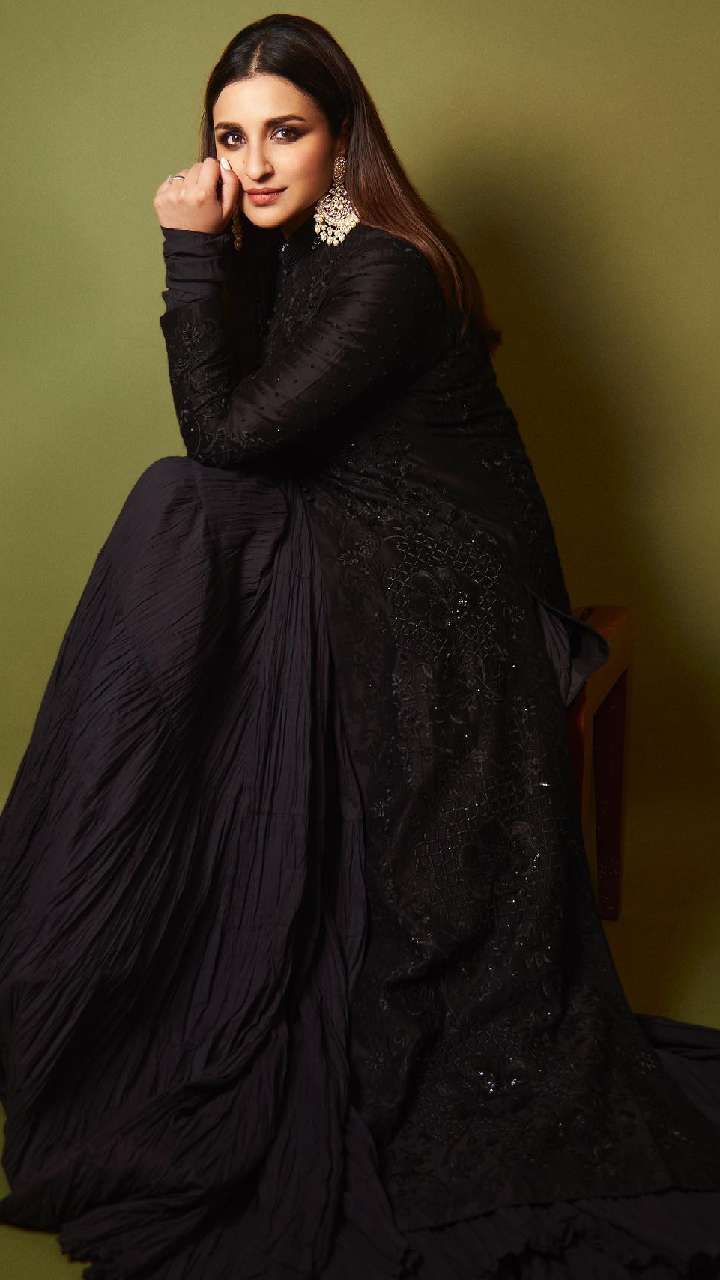 अगर आप ब्लैक लवर हैं तो परिणीति चोपड़ा का ये ब्लैक सूट आपको जरूर पसंद आएगा। एक्ट्रेस का ये लुक शानदार है।