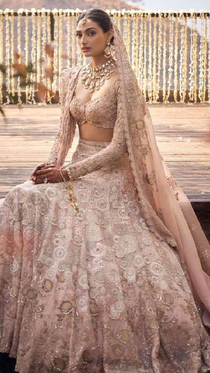 अथिया शेट्टी ने भी इसी साल जनवरी में सात फेरे लिए हैं। एक्ट्रेस लाइट कलर के ब्राइडल लहंगे मैचिंग ज्वैलरी में कहर बरपा रही थीं।
