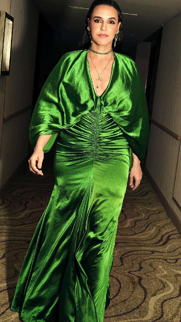 90s ब्यूटी नेहा धूपिया ग्रीन कलर के साटन गाउन में बेहद गॉर्जियस नजर आई। हर कोई उनके एक नजर देखता ही रह गया।