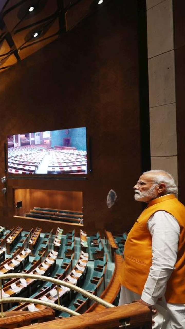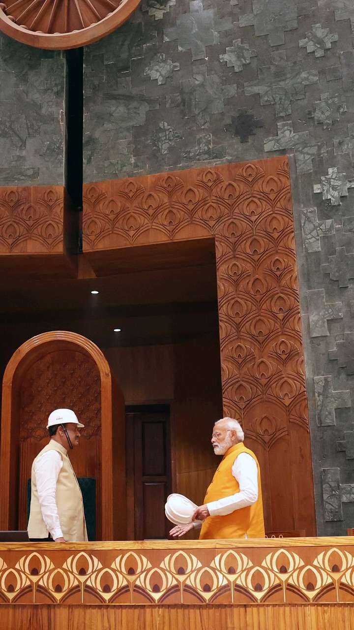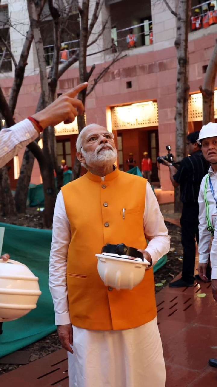 प्रधानमंत्री करीब एक घंटे तक इमारत के अंदर रहे। उनके साथ लोकसभा स्पीकर ओम बिरला भी थे।