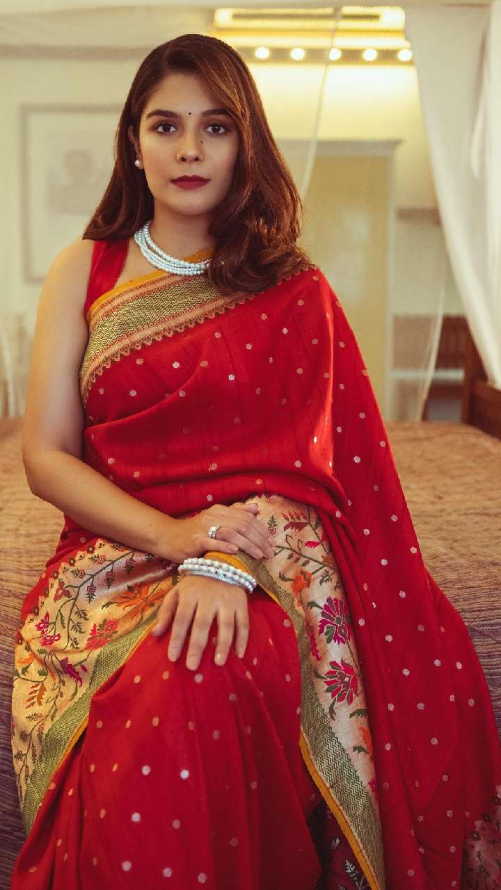 अपने लुक को सबसे खास बनाने के लिए आप पूजा गौर की तरह ही रेड साड़ी को पहन सकती हैं। आप एक्ट्रेस के ब्लाउज डिजाइन को भी कॉपी कर सकती हैं।