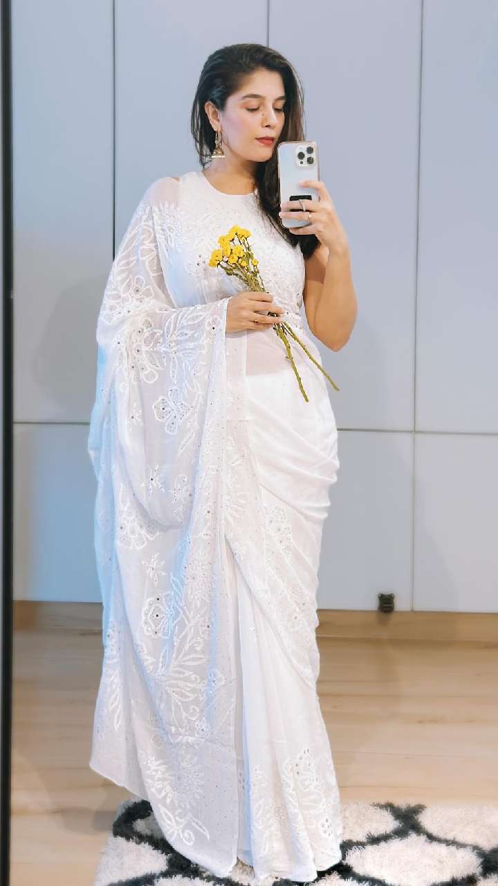 अगर आप सिंपल सोबर साड़ी लुक कैरी करना पसंद करती हैं तो आप प्लेन व्हाइट साड़ी को भी स्टाइल कर सकती हैं।