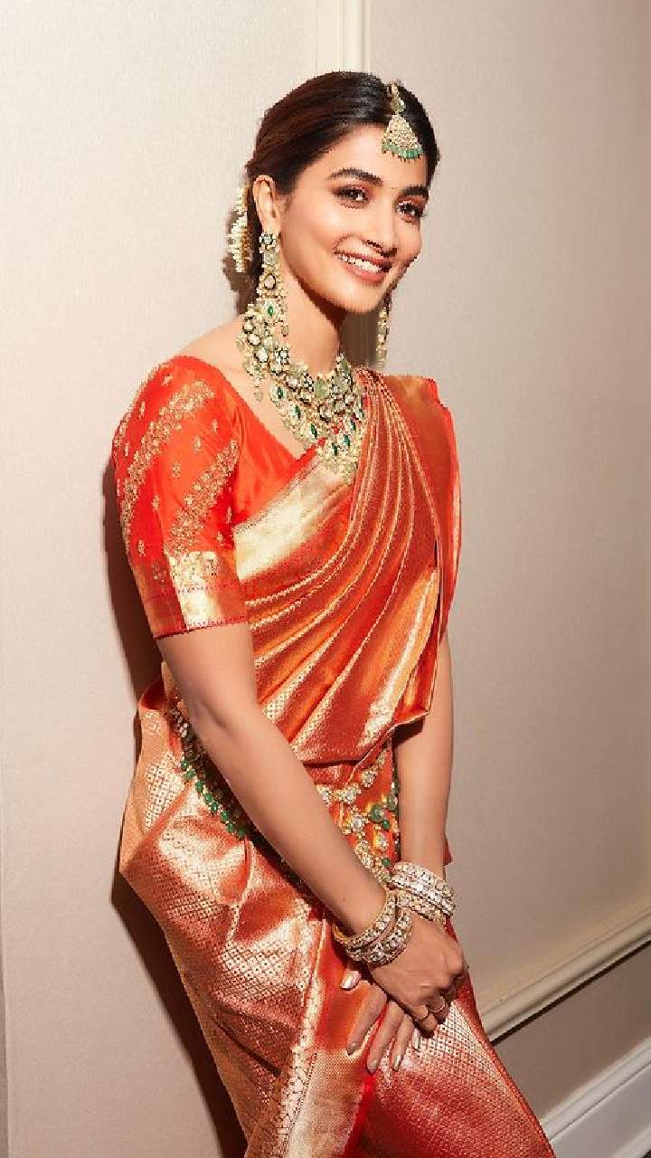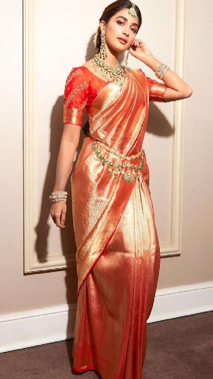अभिनेत्री कांजीवरम साडी में बला की खूबसूरत लग रही थीं। पूजा का ये लुक सोशल मीडिया पर जमकर वायरल हुआ था।