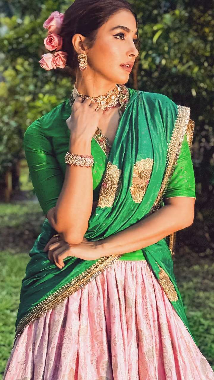 वेस्टर्न हो या फिर इंडियन पूजा हेगड़े का हर लुक काफी ज्यादा खास और अट्रैक्टिव होता है। आज हम आपको उनके इंडियन लुक्स दिखाएंगे।