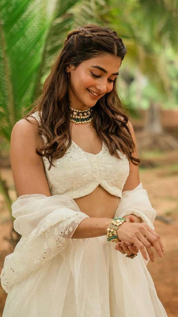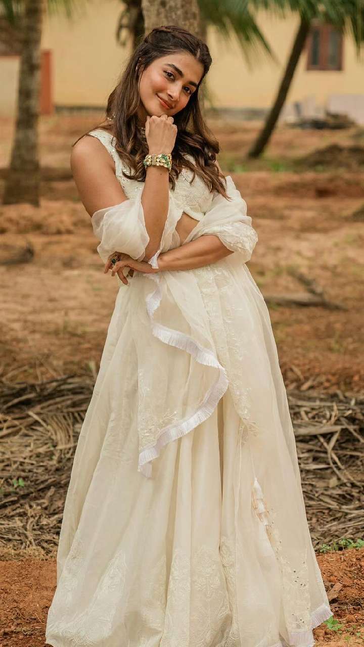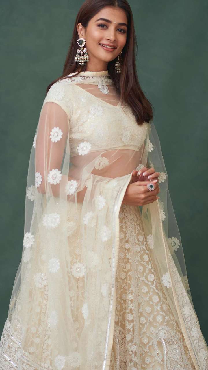 पूजा हेगड़े इस व्हाइट लहंगे में काफी ज्यादा क्लैसी लग रहीं हैं। आप भी इस तरह के लहंगे को पहन सकती हैं।