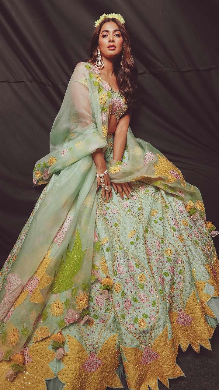 पूजा हेगड़े का ये येलो लहंगा भी काफी ज्यादा शानदार है। एक्ट्रेस का हर लुक तारीफेकाबिल होता है।
