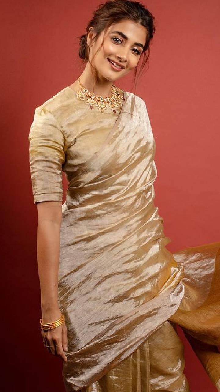 पूजा हेगड़े साड़ी में किसी अप्सरा से कम खूबसूरत नही लगती हैं।