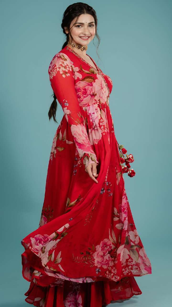 रेड कलर के इस फ्लावर प्रिंटेड सूट में प्राची देसाई बहुत खूबसूरत लग रहीं हैं। एक्ट्रेस ने हाल ही में अपना ये लुक शेयर किया था।