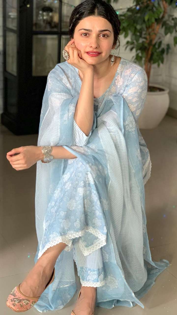 आप लाइट कलर के सूट लुक भी कैरी कर सकती हैं। इस ब्लू कलर के सूट में प्राची बहुत खूबसूरत लग रहीं हैं।