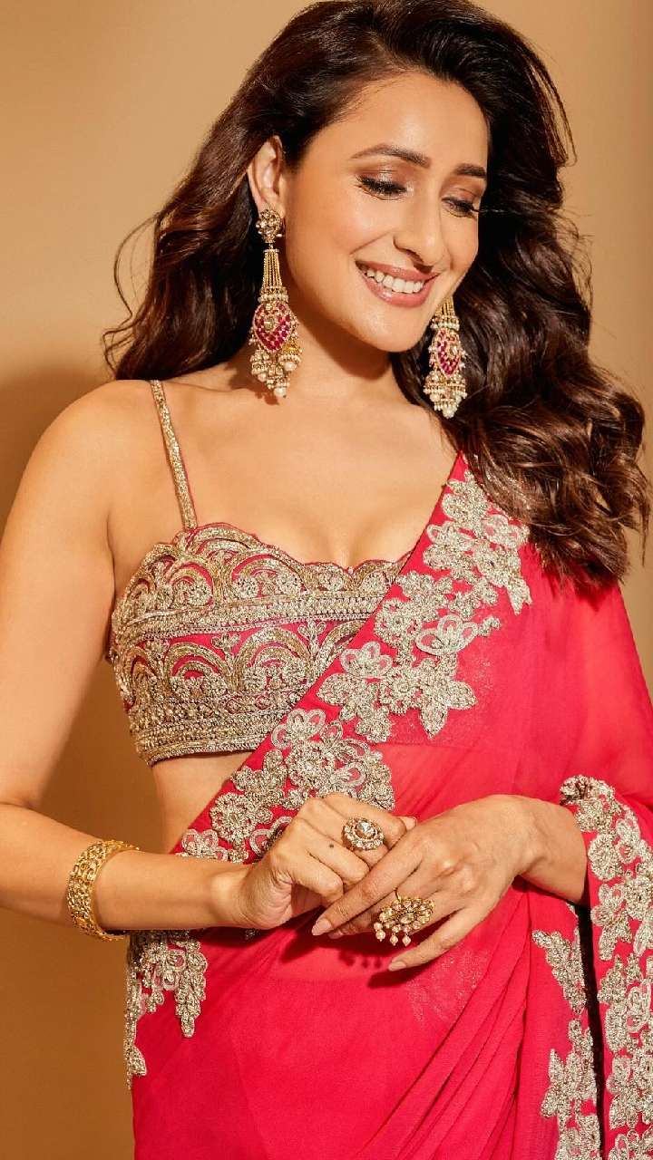 एक्ट्रेस ने पिंक कमल की डिजाइनर साड़ी के साथ ब्लाउज को अट्रैक्टिव लुक दिया हैं। आप इसे बोल्ड मेकअप के साथ पहन सकती हैं।