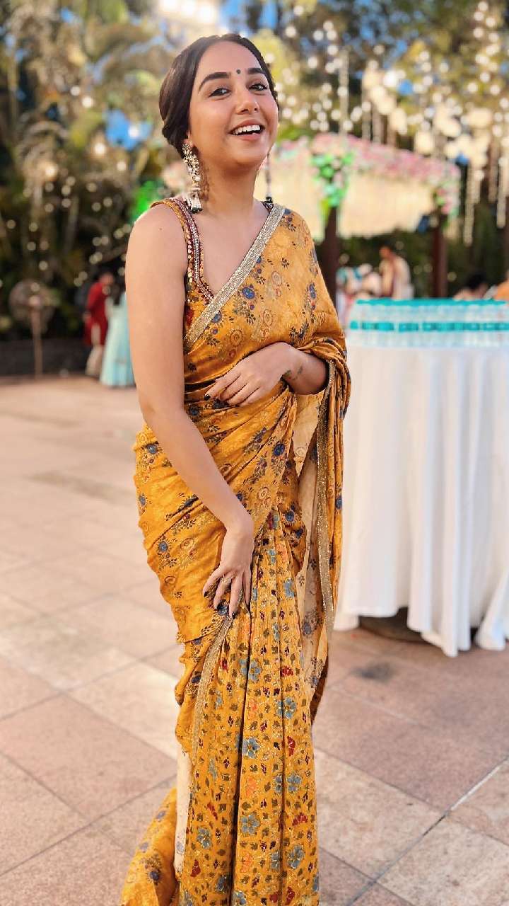 येलो कलर की फ्लावर प्रिंटेड साड़ी में प्राजक्ता कोली बेहद खूबसूरत लग रहीं हैं। एक्ट्रेस का ये लुक यंग गर्ल्स के लिए परफेक्ट है।