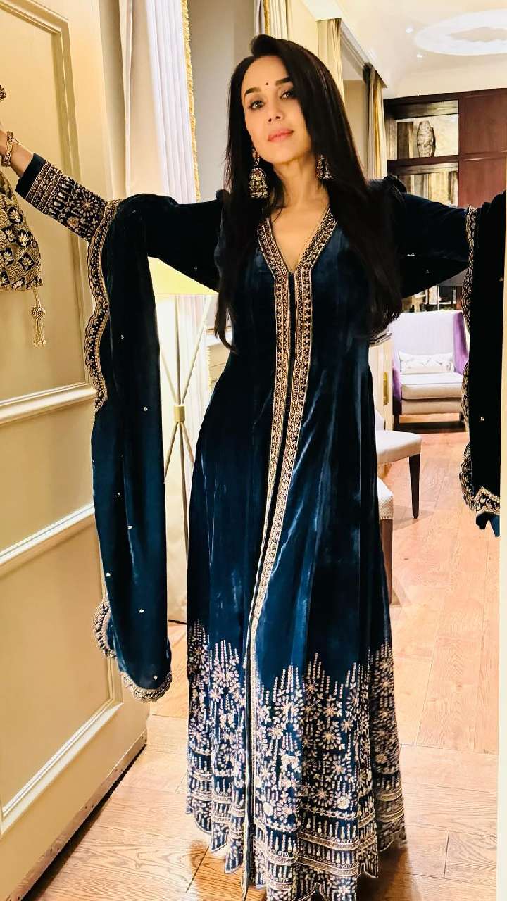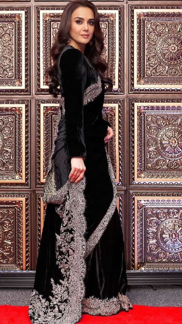 ब्लू कलर के वेलवेट सूट में प्रीति जिंटा का लुक काफी ज्यादा रॉयल लग रहा है। आप भी इस तरह के सूट कैरी कर अपने लुक को शानदार बना सकती हैं।