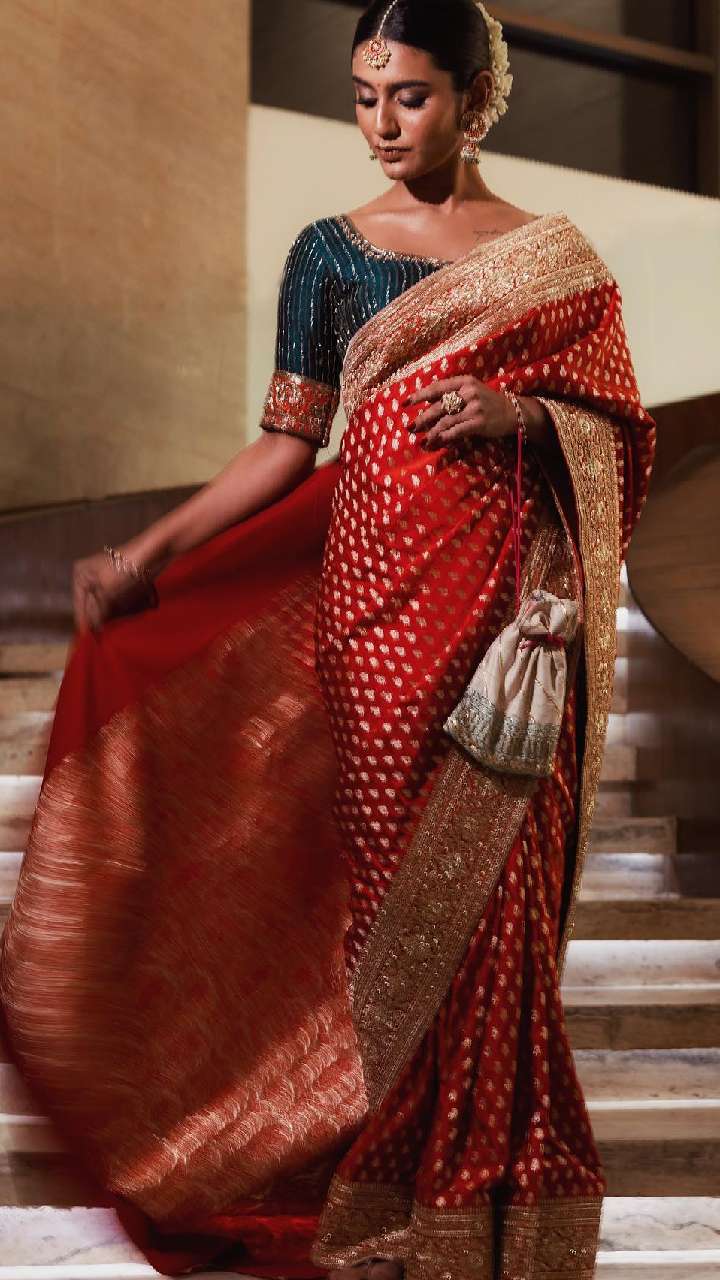 इस रेड कलर की साड़ी में प्रिया का ये लुक काफी ज्यादा शानदार लग रहा है। आप भी इस तरह की साड़ी को कैरी कर सकती हैं।