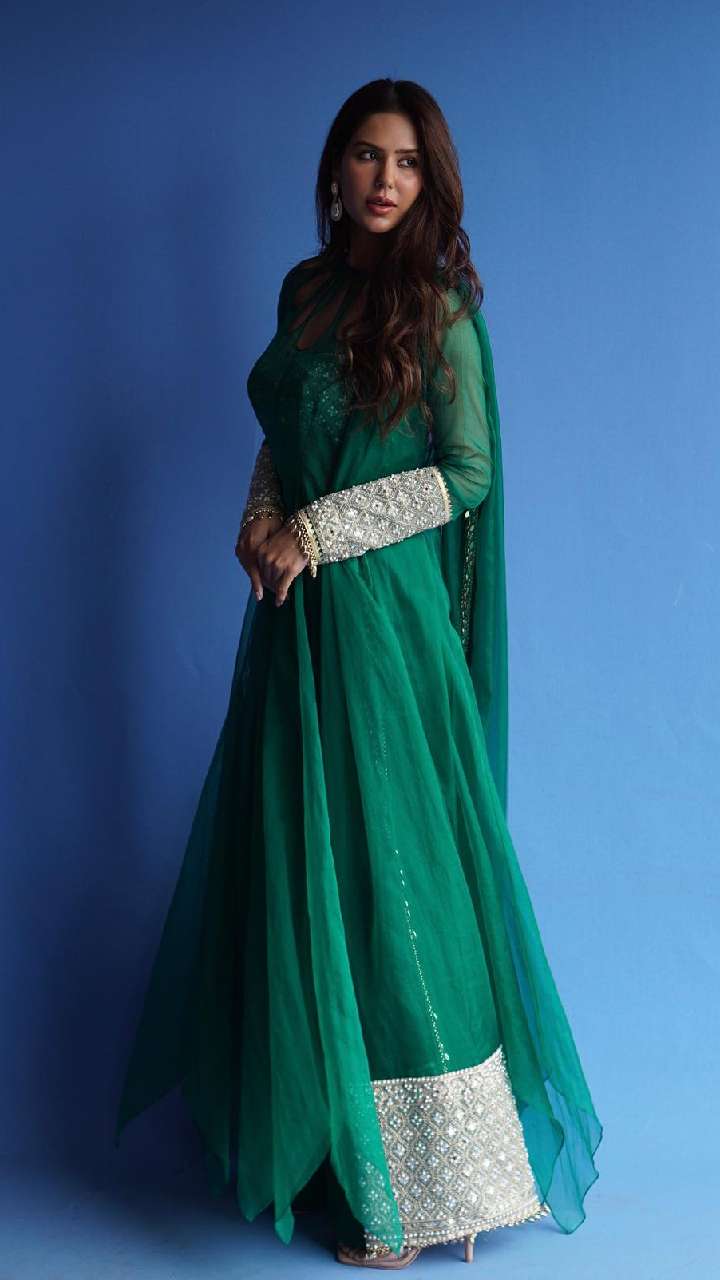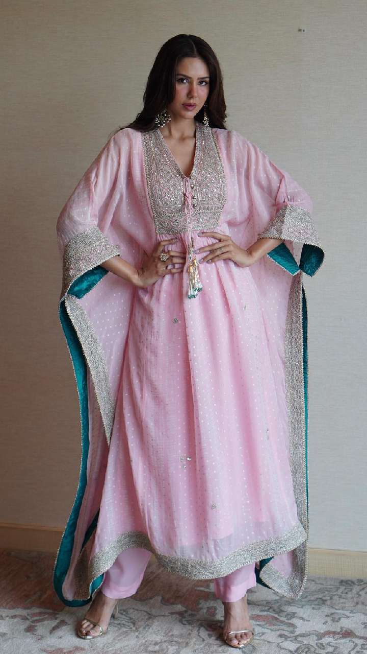 पिंक कलर के कफ्तान में सोनम बाजवा का लुक काफी एलिगेंट लग रहा है। अगर आपने अभी तक कफ्तान लुक ट्राई नहीं किया तो जल्द ही करें।
