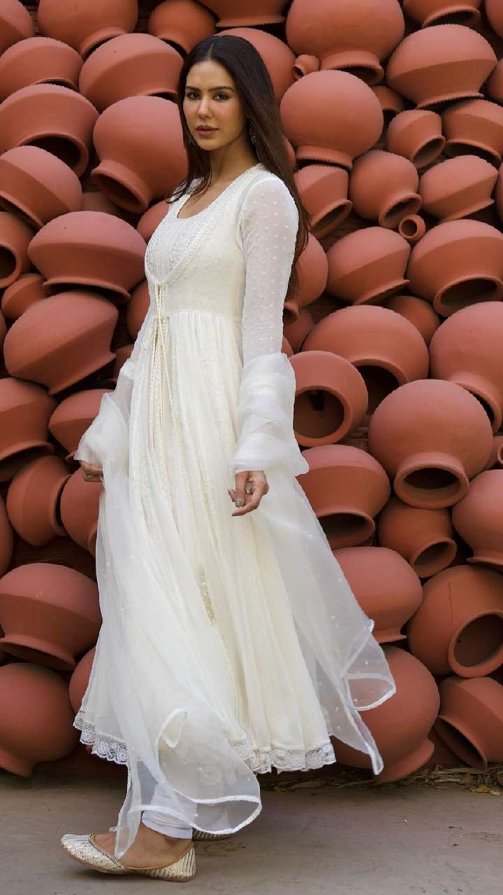 अगर आप अपने सूट लुक को सिंपल बनाना चाहती हैं तो आप सोनम बाजवा की तरह ही व्हाइट सूट स्टाइल कर सकती हैं।