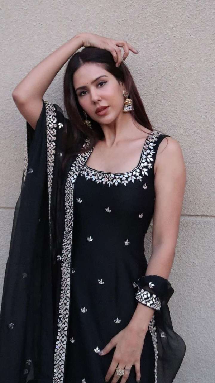 अगर आप ब्लैक लवर्स हैं तो आप सोनम बाजवा के इस लुक को कॉपी कर सकती हैं। ब्लैक कलर का सूट काफी प्यारा लग रहा है।