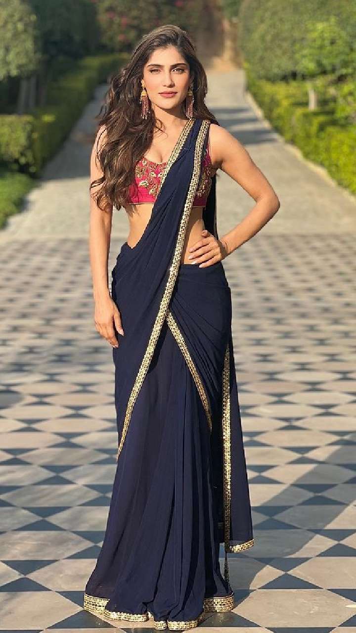 किलर लुक के लिए आप इशिता के इस नेवी ब्लू लहंगे और पिंक कट स्लीव्स चोली को कैरी कर सकते हैं।
