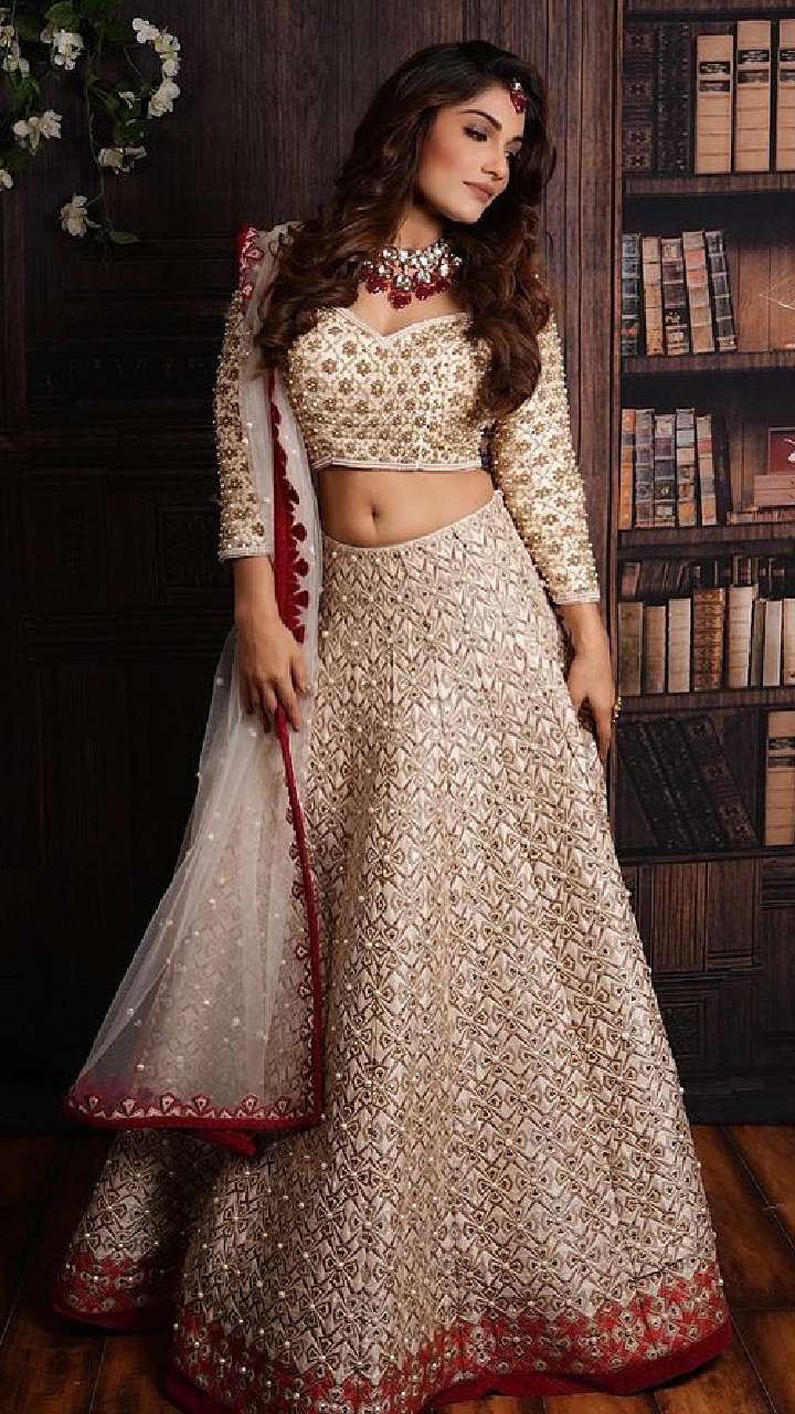अभिनेत्री का ये क्रीम कलर लहंगा आपको रॉयल लुक देगा।