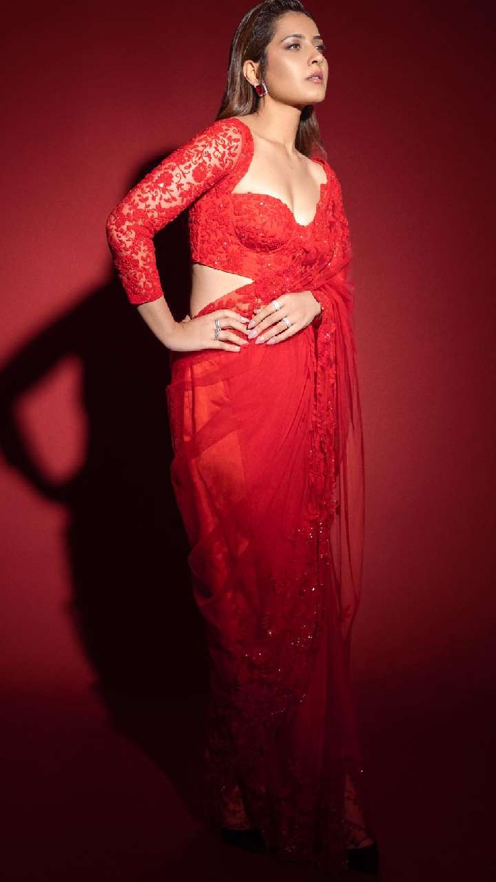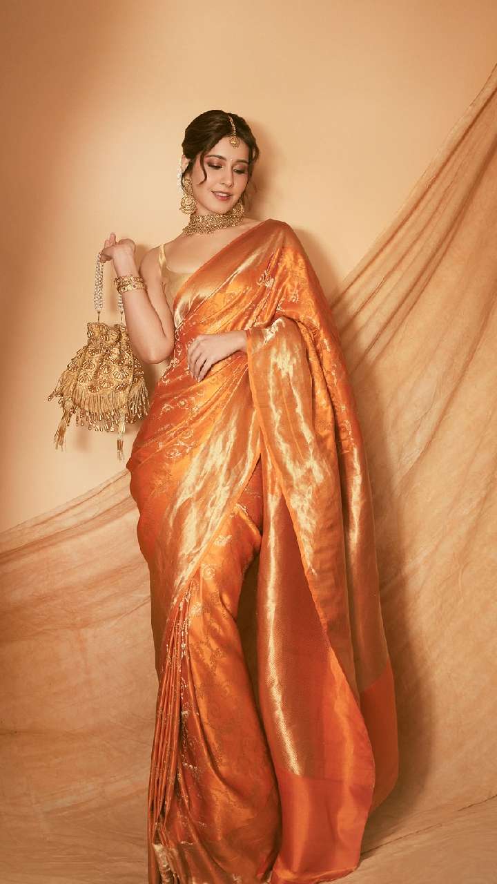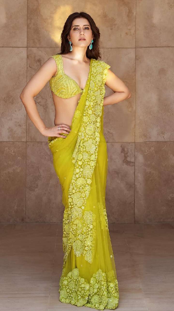 राशि खन्ना ने हाल ही में अपना लेटेस्ट साड़ी लुक शेयर किया है। आप भी इस तरह की सिल्क साड़ी को स्टाइल कर सकती हैं।