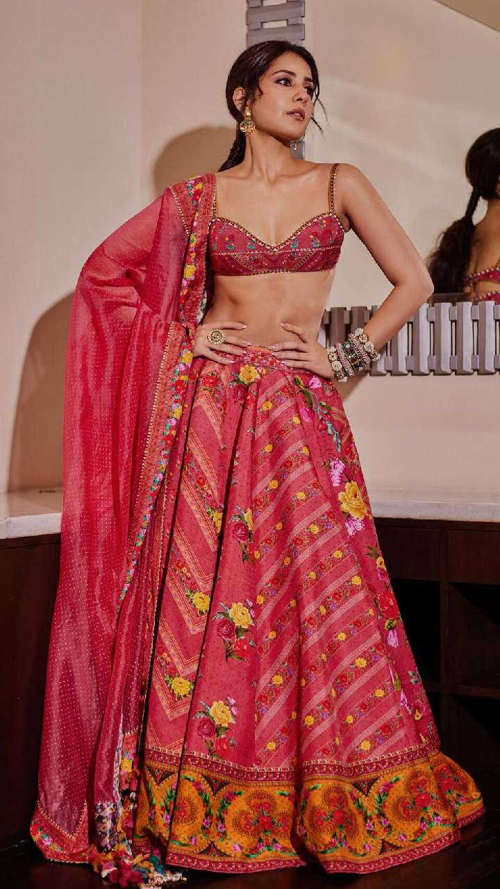 राशि खन्ना का ये एम्ब्रॉयडरी लहंगा काफी ज्यादा ट्रेंडी लुक दे रहा है। खास मौके पर इस तरह के लहंगा चार चांद लगा देंगे।