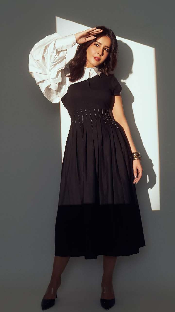राशि खन्ना सोशल मीडिया पर काफी ज्यादा एक्टिव रहती हैं। हाल ही में एक्ट्रेस ने ब्लैक ड्रेस में फोटोज शेयर की जो काफी ज्यादा सुंदर हैं।