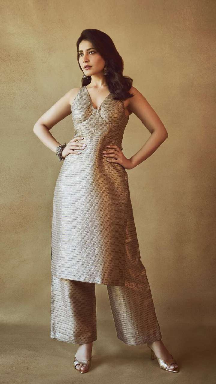 ब्लू कलर के को-ऑर्ड सेट में राशि खन्ना का लुक बॉसी लग रहा है। आप भी इस तरह के को-ऑर्ड सेट को स्टाइल कर सकती हैं।
