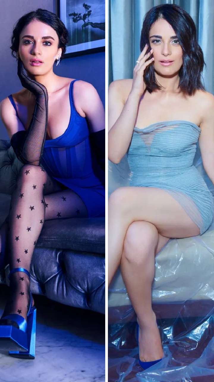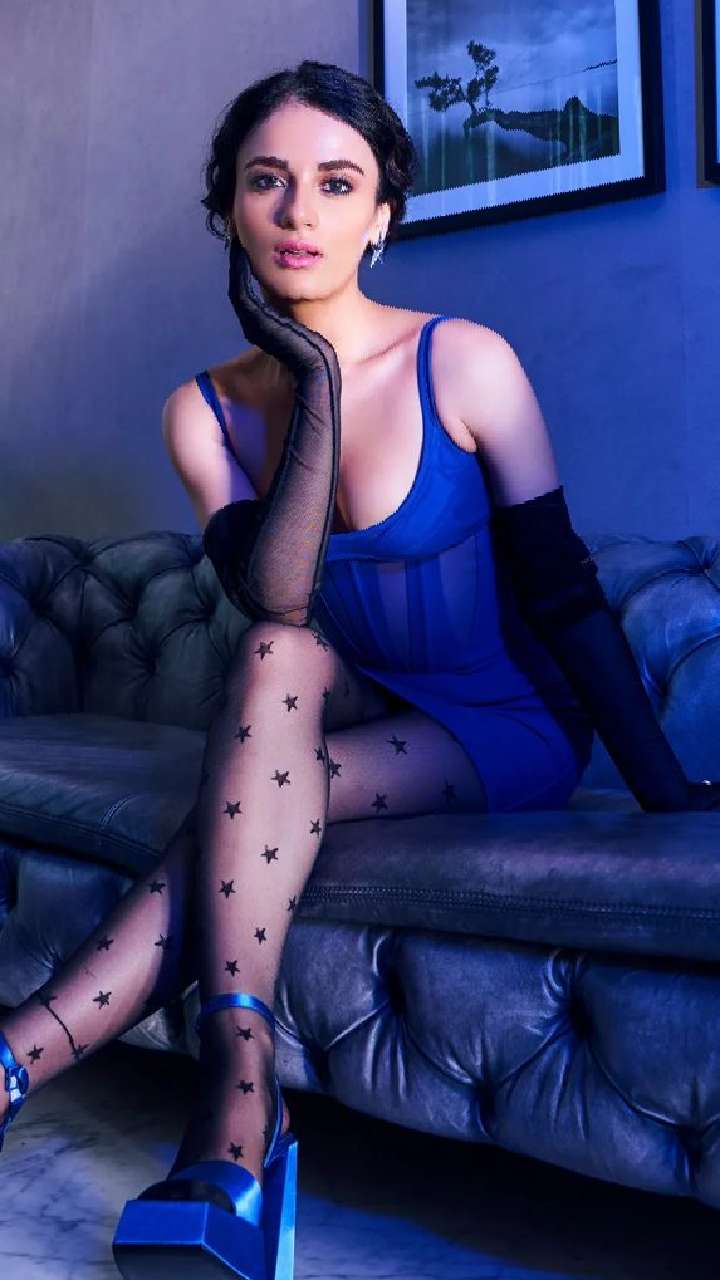इस ब्लू कलर की डीपनैक ड्रेस में डीवा बोल्डनेस की सारी हदें पार कर रही हैं।