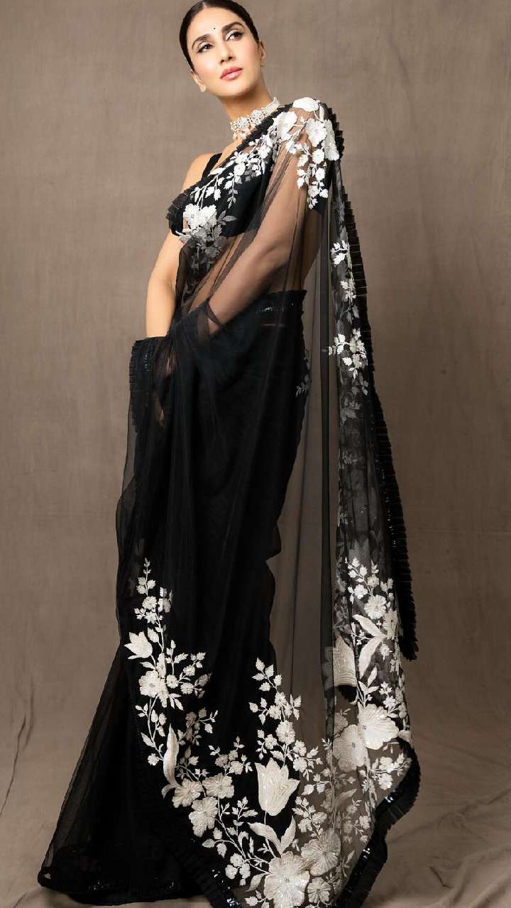 वाणी कपूर को साड़ी पहनना बहुत पसंद है। इस तस्वीर में उन्होंने ब्लैक कलर की फ्लोरल वर्क साड़ी स्टाइल की है, जिसमें वह बला की खूबसूरत लग रही हैं। ऐसी साड़ी आप अपने वॉडरोब में शामिल कर सकती हैं।