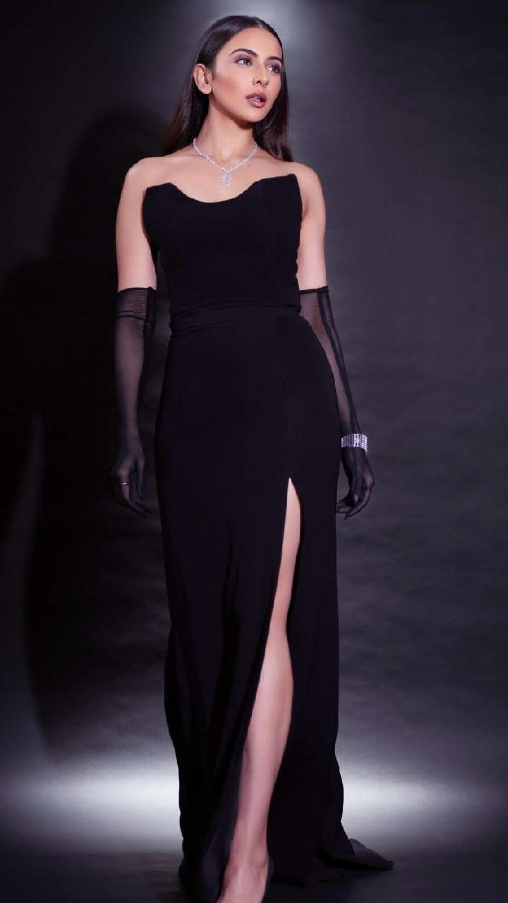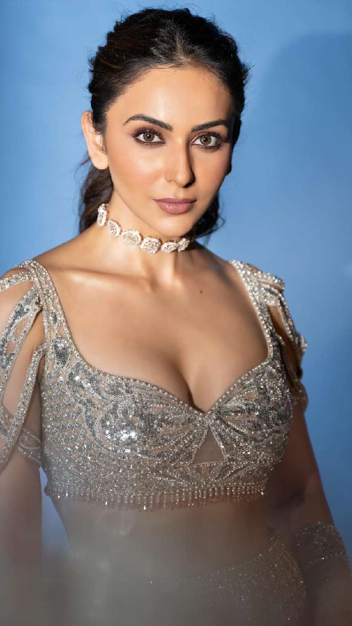 Rakul ने डिजाइनर आउटफिट के साथ इस 3 लेयर्ड नेकलेस को स्टाइल किया है, जो देखने में बेहद क्लासी वाइब दे रहा हैं। आप पार्टीज में शॉर्ट ड्रेस के भी स्टाइल कर सकती हैं।