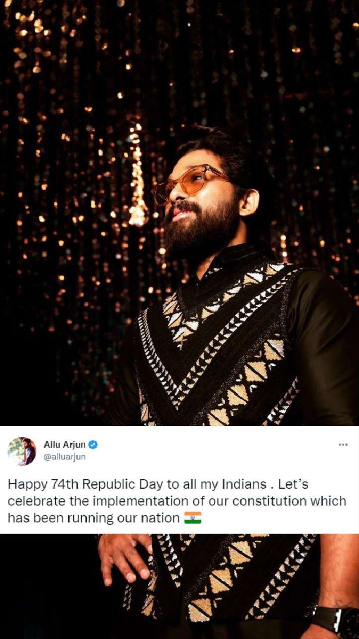 अल्लू अर्जुन ने भी ट्विटर पर ट्वीट कर रिपब्लिक डे की शुभकामनाएं दी हैं।