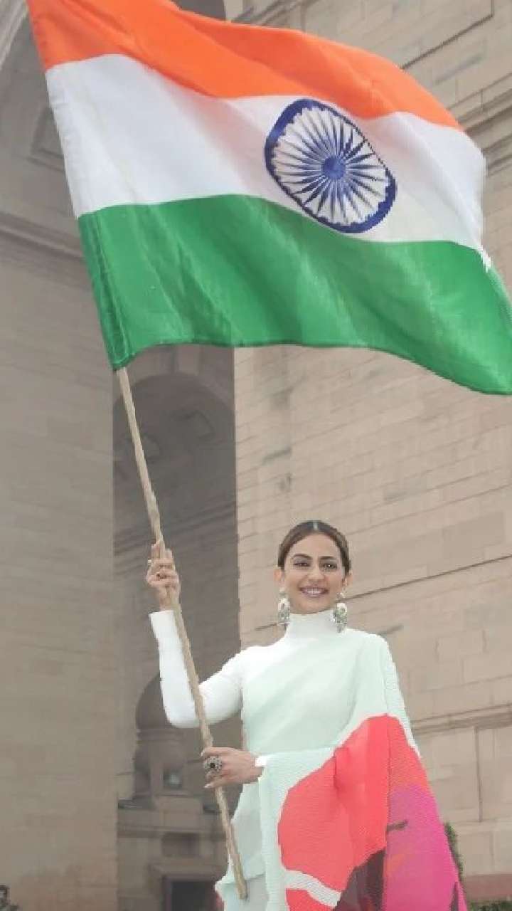 छत्रीवाली एक्ट्रेस रकुल प्रीत ने इंडिया गेट पर तिरंगा लहरा कर फैंस को रिपब्लिक डे की शुभकामनाएं दी हैं।