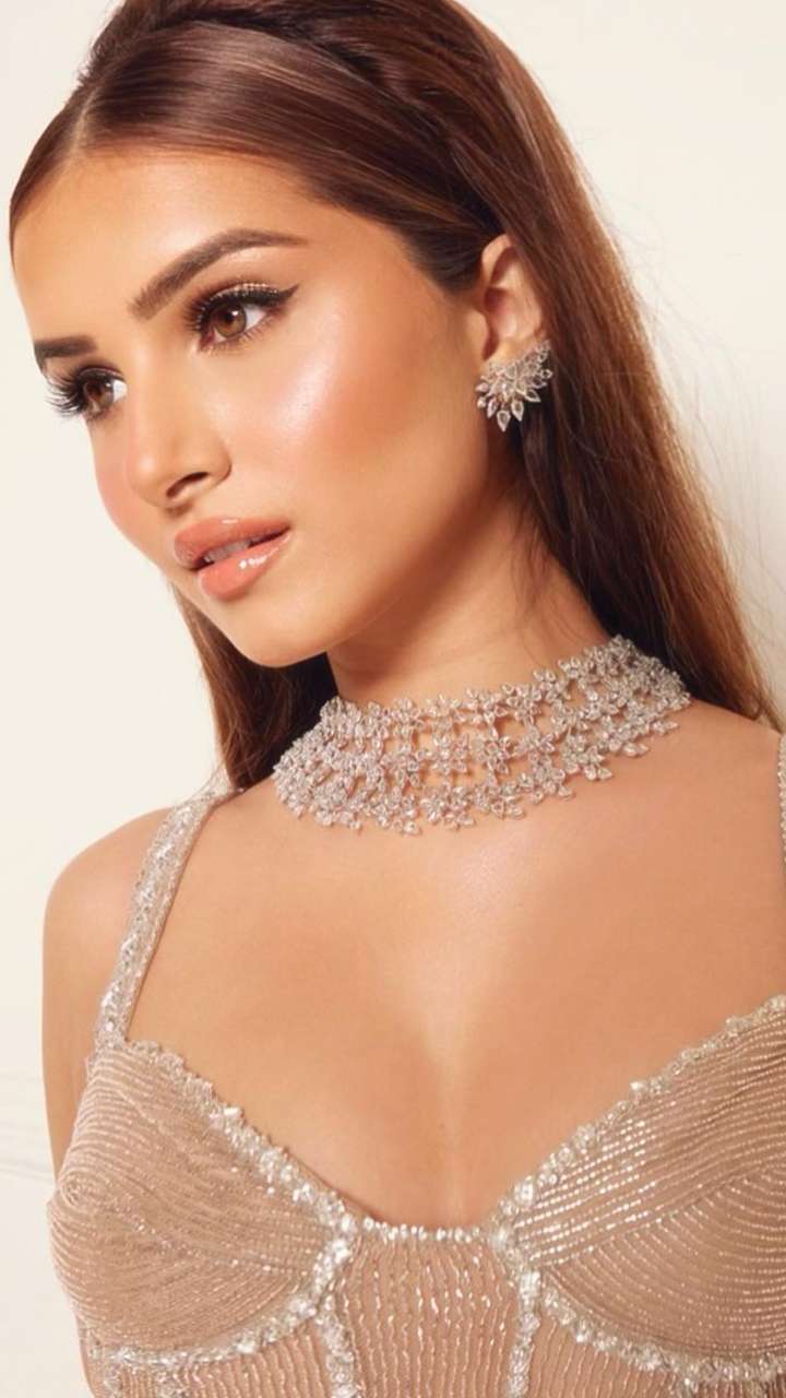 वेडिंग में अभिनेत्री का सिल्वर सेक्विन लहंगा आपके लुक में चार चाँद लगा देगा। ऐसे में इस लुक को जरूर कॉपी करें।