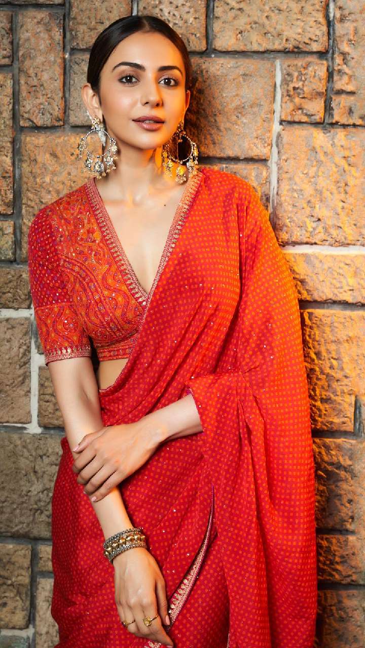 रकुल प्रीत सिंह अपने लुक्स को लेकर भी काफी ज्यादा चर्चा में बनी रहती हैं। एक्ट्रेस का ये लेटेस्ट साड़ी लुक गजब का है।