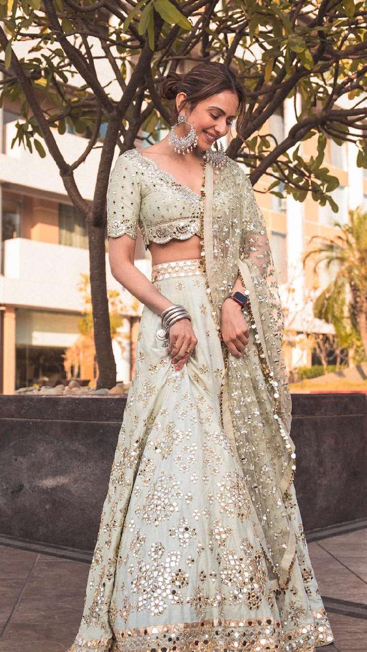 वेस्टर्न लुक हो या फिर इंडियन लुक रकुल प्रीत सिंह हर आउटफिट में शानदार लगती हैं। एक्ट्रेस इस लहंगे में भी गजब लग रहीं हैं।
