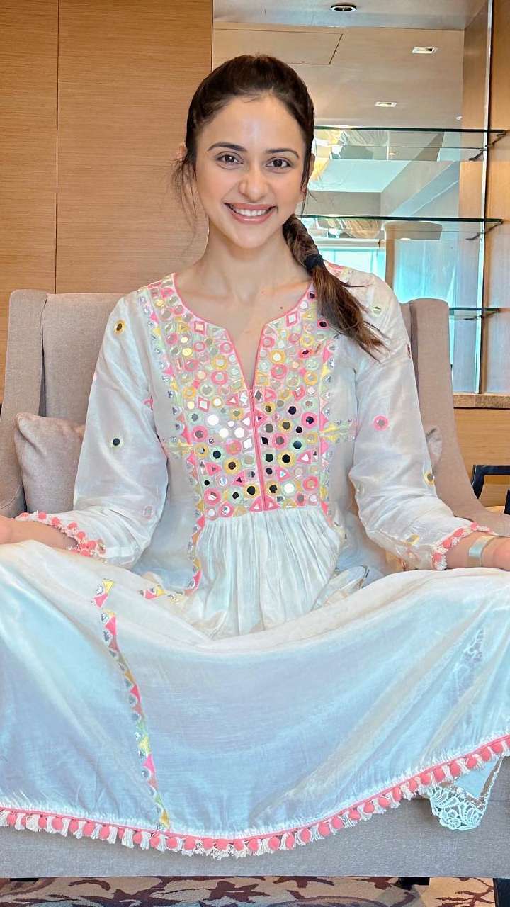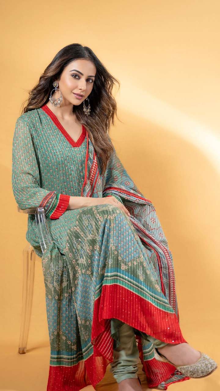 आज हम आपको रकुल प्रीत सिंह के ट्रेंडी सलवार-सूट डिजाइन दिखाएंगे, जिसे आप भी कैरी कर अपने फेस्टिवल लुक को स्पेशल बना सकती हैं।