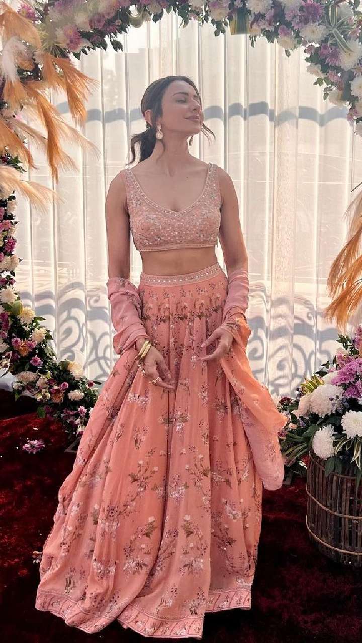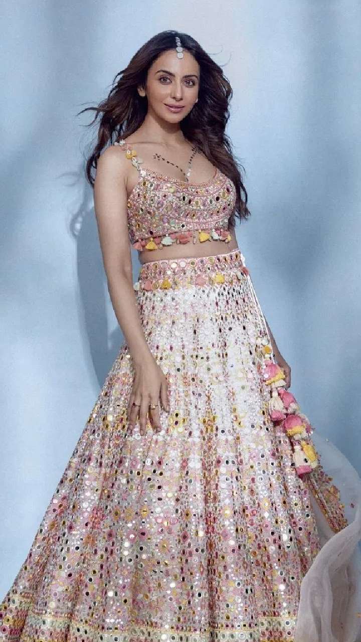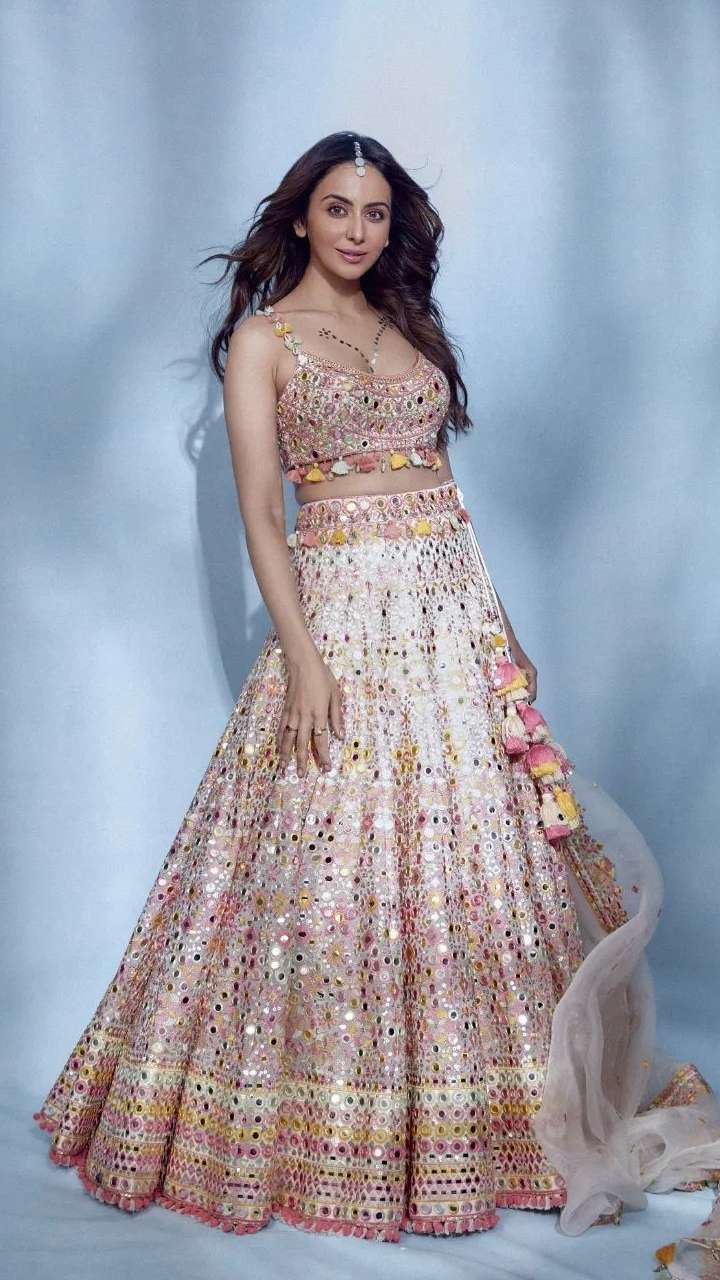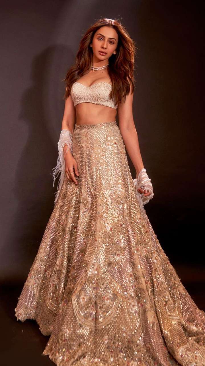 रकुल प्रीत का ये स्पार्कल लहंगा वेडिंग के लिए एकदम बेस्ट है।