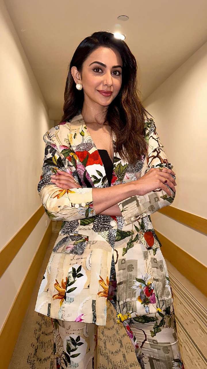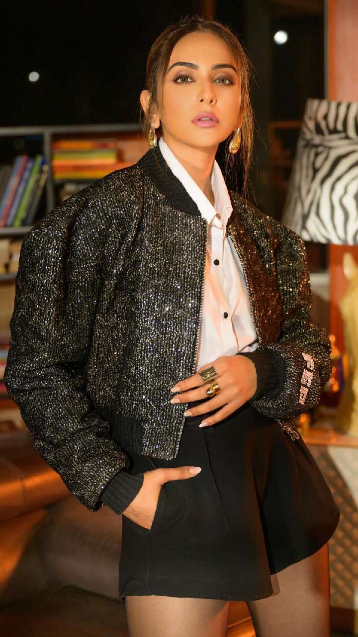 रकुल प्रीत सिंह सोशल मीडिया पर काफी ज्यादा एक्टिव रहती हैं। हाल ही में एक्ट्रेस ने अपना लेटेस्ट लुक शेयर किया। एक्ट्रेस ने ब्लैक ने ब्लैक शॉर्ट्स के साथ व्हाइट शर्ट और ब्लेजर पेयर किया है।