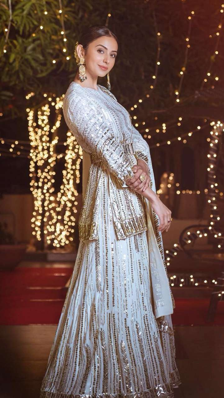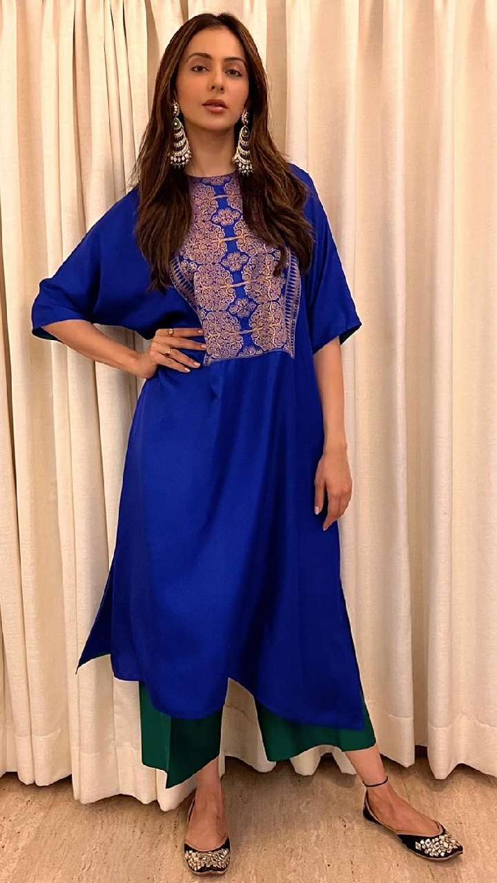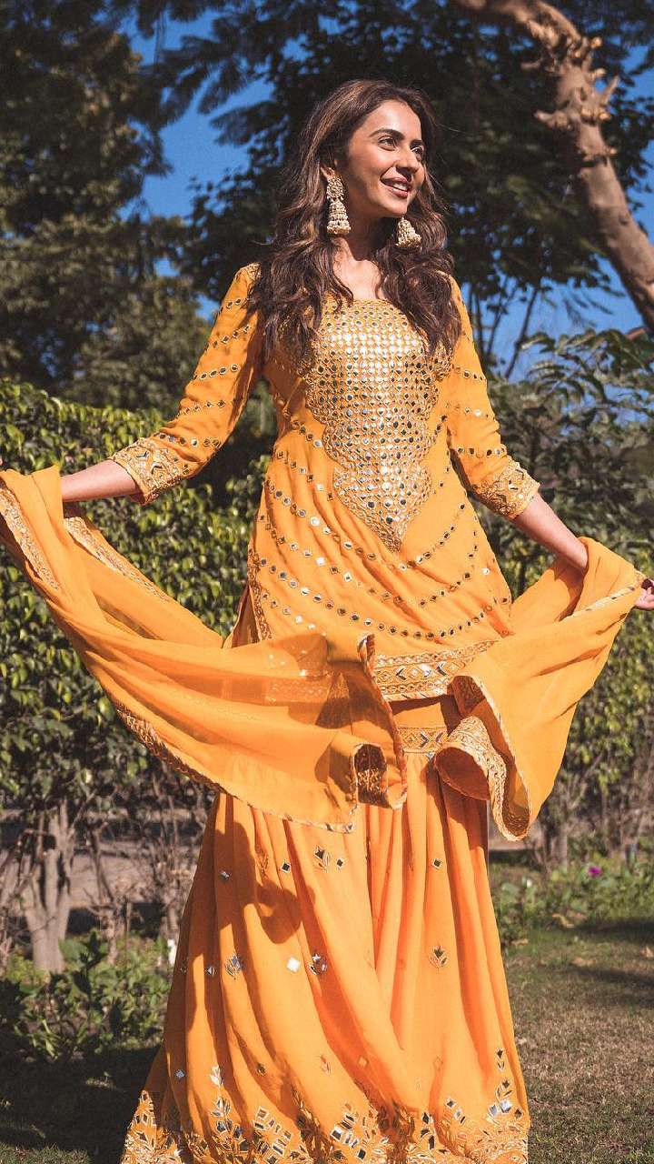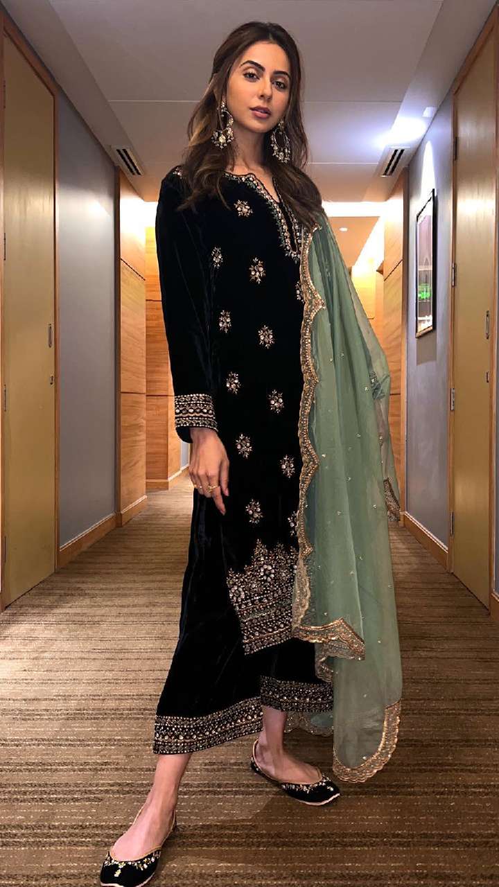 अपने इंडियन लुक में अक्सर सोशल मीडिया पर जलवा बिखेरने वाली रकुल प्रीत के आज हम आपको ट्रेंडी सूट कलेक्शन दिखाने जा रहे हैं। जिन्हें आप संगीत सेरेमनी में पहन सकती हैं।