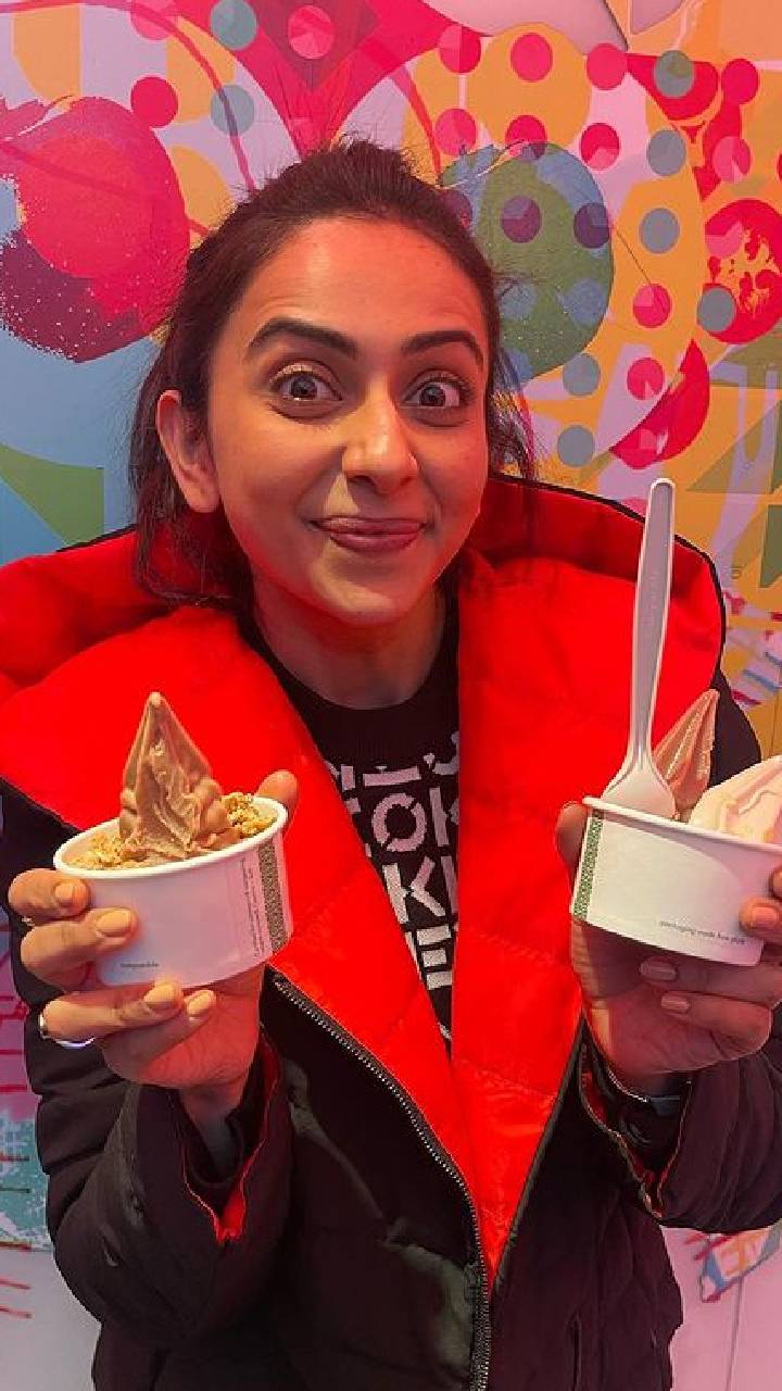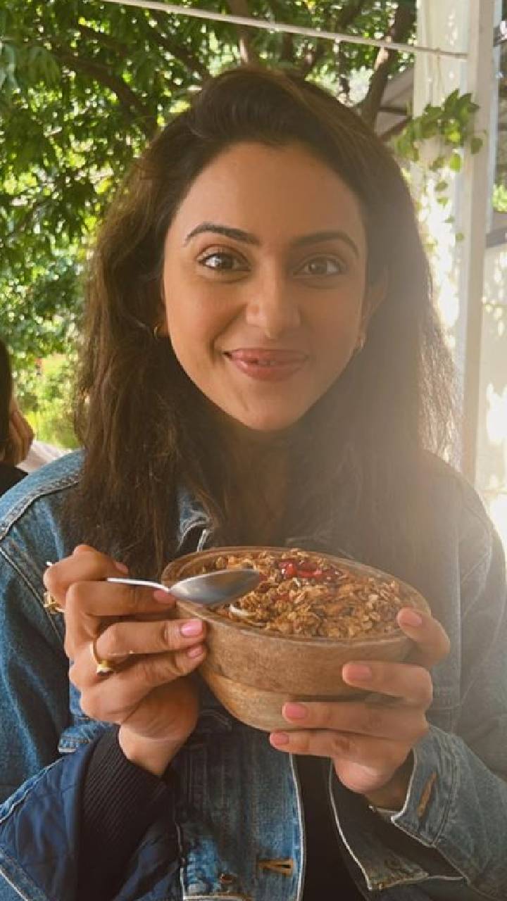रकुल प्रीत को इस तस्वीर में फूडी अंदाज में देखा जा सकता हैं।