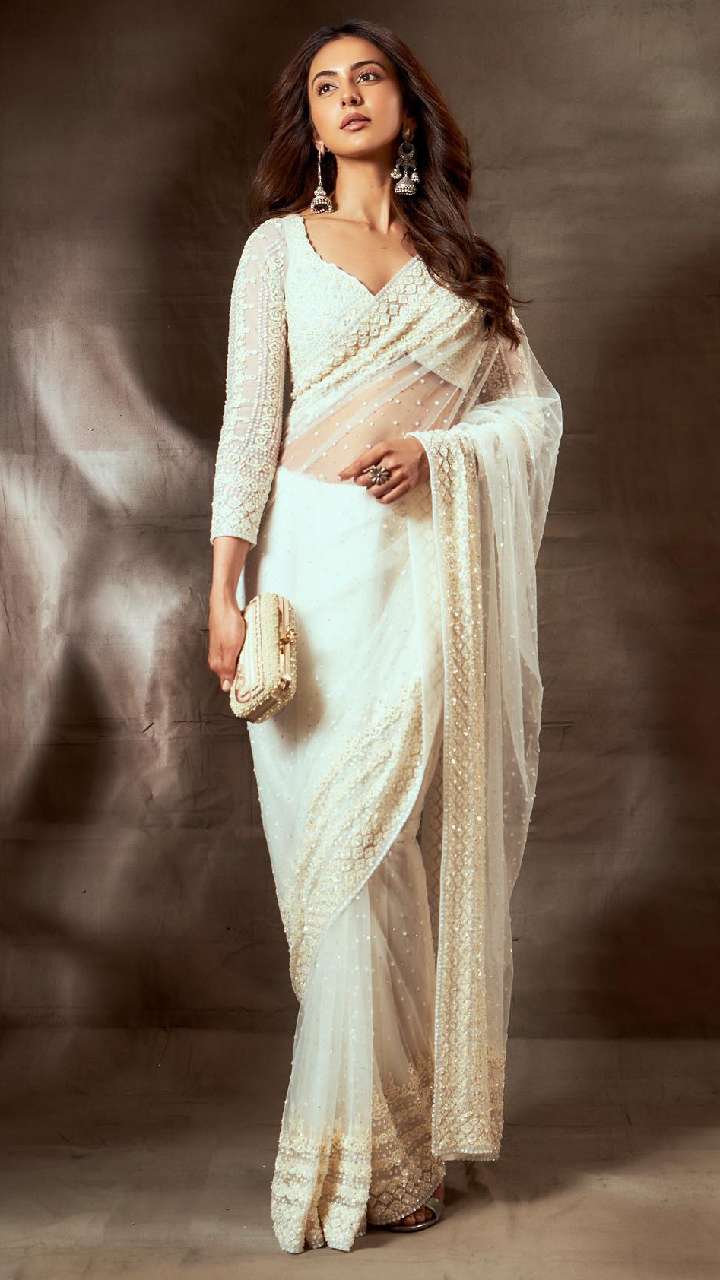 एक्ट्रेस का इंडियन से लेकर वेस्टर्न हर लुक अट्रैक्टिव होता है। उनके पास साड़ी का शानदार कलेक्शन है। ऐसे में आज हम आपको रकुल प्रीत के साड़ी लुक्स दिखाने जा रहे हैं, जिन्हें आप इस वेलेंटाइन डे पर कैरी कर सकती हैं।