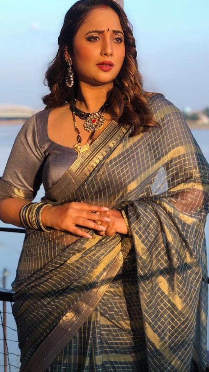 तस्वीर में एक्ट्रेस को ग्रे कलर की साड़ी और ज्वेलरी पहने बेहद खूबसूरत अदाएं देते देखा जा सकता है।