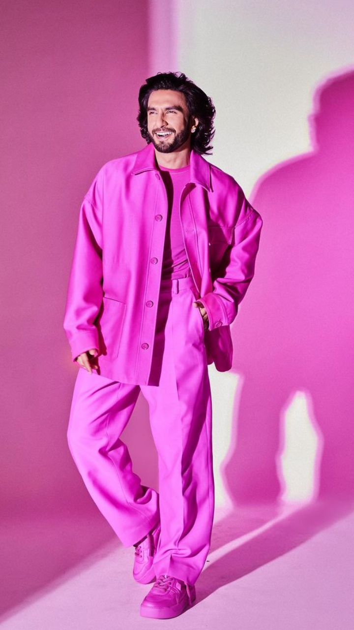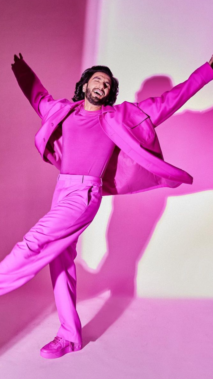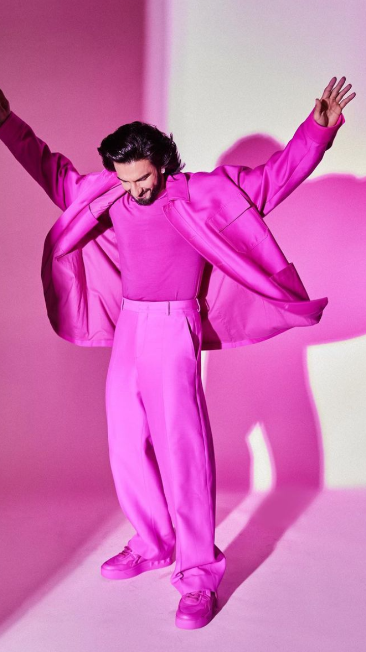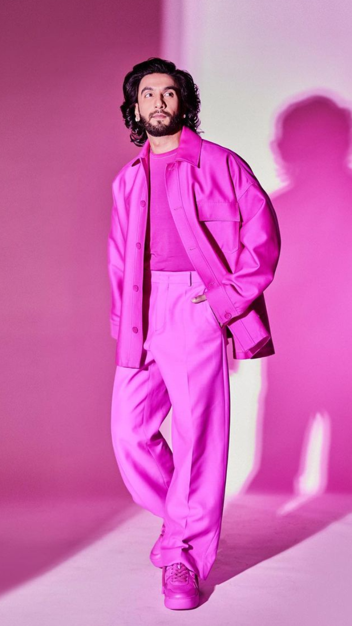 रणवीर सिंह ने हाल ही में अपने इंस्टाग्राम पर अपनी अतरंगी आउटफिट की फोटोज शेयर की हैं। रणवीर सर से लेकर पैर तक पिंक कलर के ऑउटफिट में नजर आये।