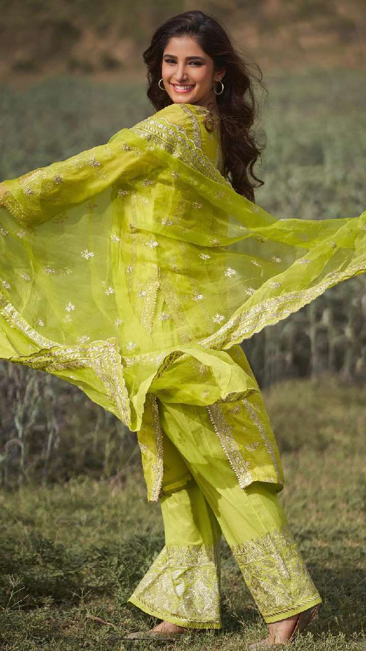 चिकनकारी सूट हर लड़की के ऊपर अच्छा लगता है। राशा थडानी की तरह आप भी सिंपल सोबर लुक में भी शानदार लग सकती हैं।