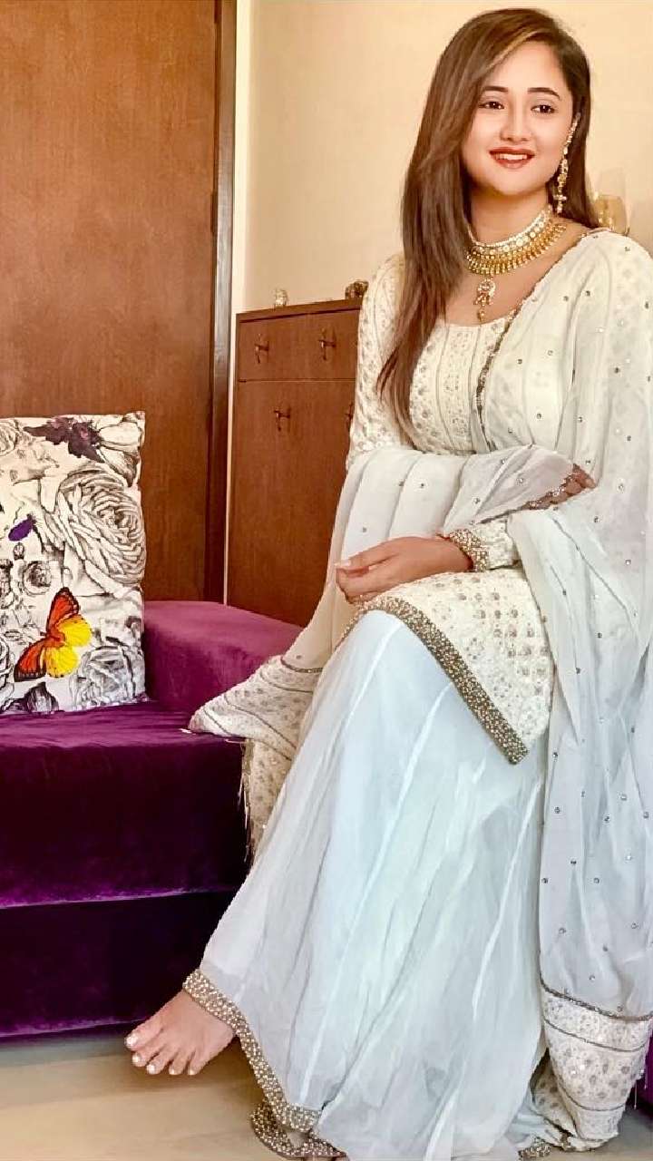 अगर आप हैवी वर्क कैरी करना पसंद करती हैं तो आप रश्मि देसाई के इस व्हाइट सूट लुक को कैरी कर सकती हैं।