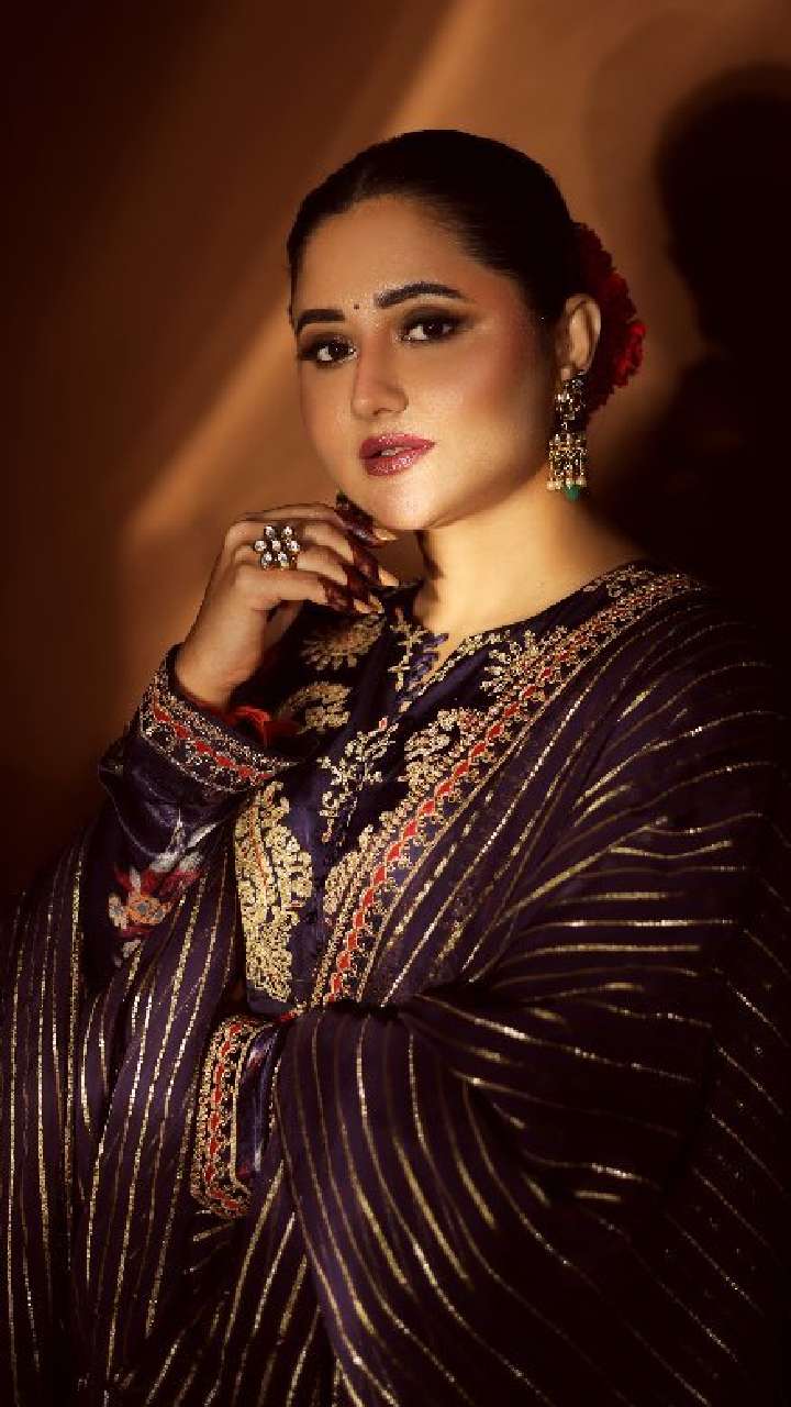 पर्पल कलर के इस शरारा पैटर्न सूट में रश्मि देसाई बहुत ज्यादा खूबसूरत लग रहीं हैं। रश्मि का ये लुक काफी ज्यादा ट्रेंडी है।