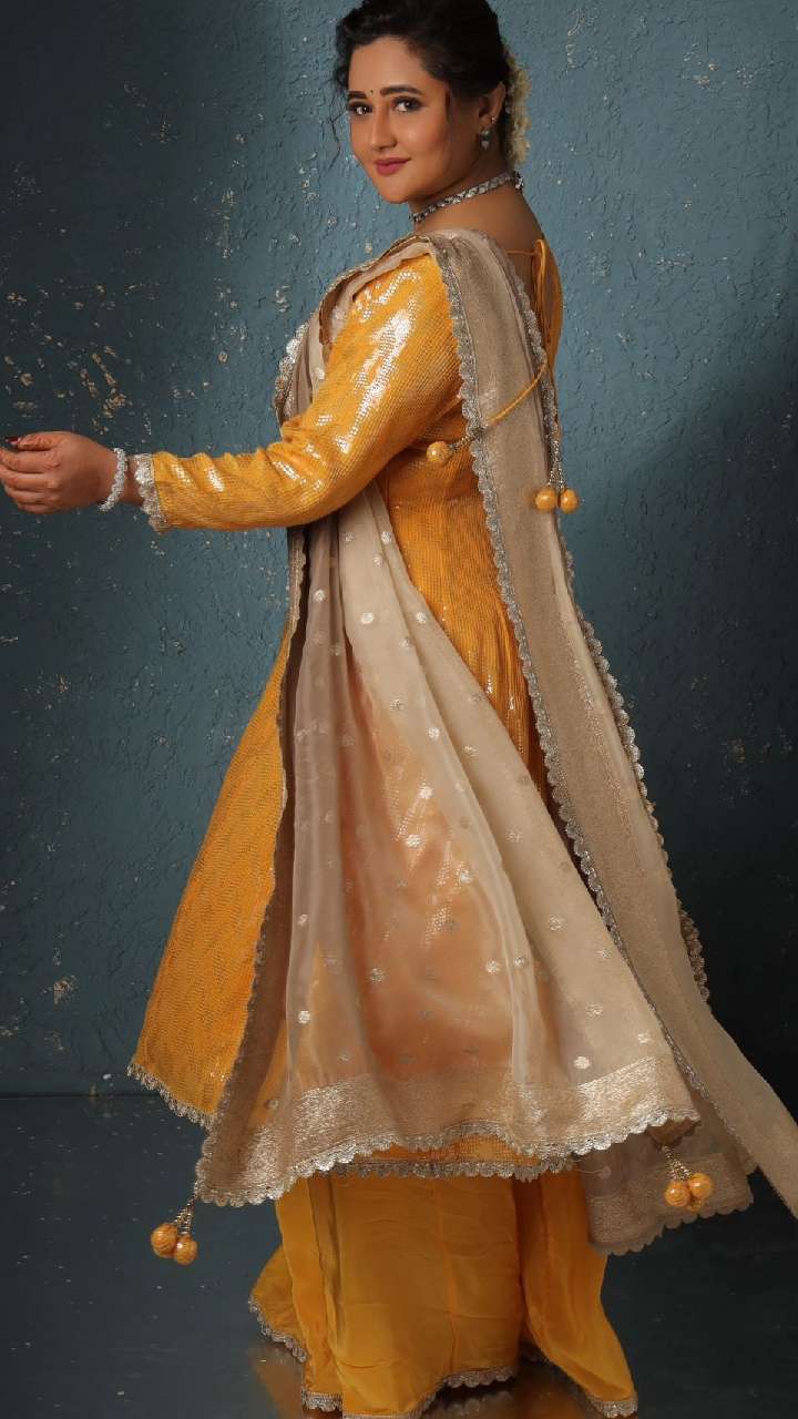 रश्मि देसाई का ये सिल्वर सूट काफी ज्यादा शानदार लग रहा है। आप भी इस तरह के घेर वाले सूट को स्टाइल कर सकती हैं।