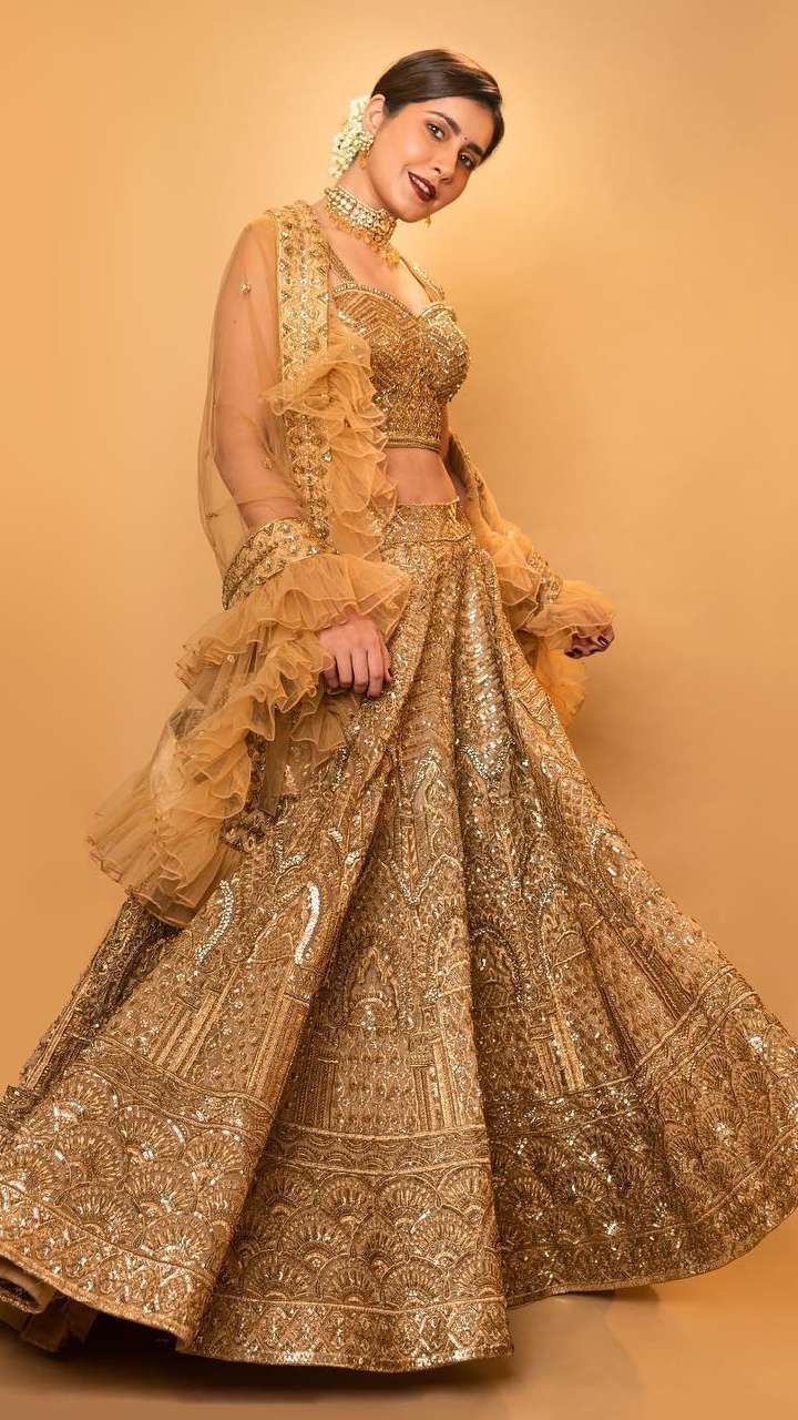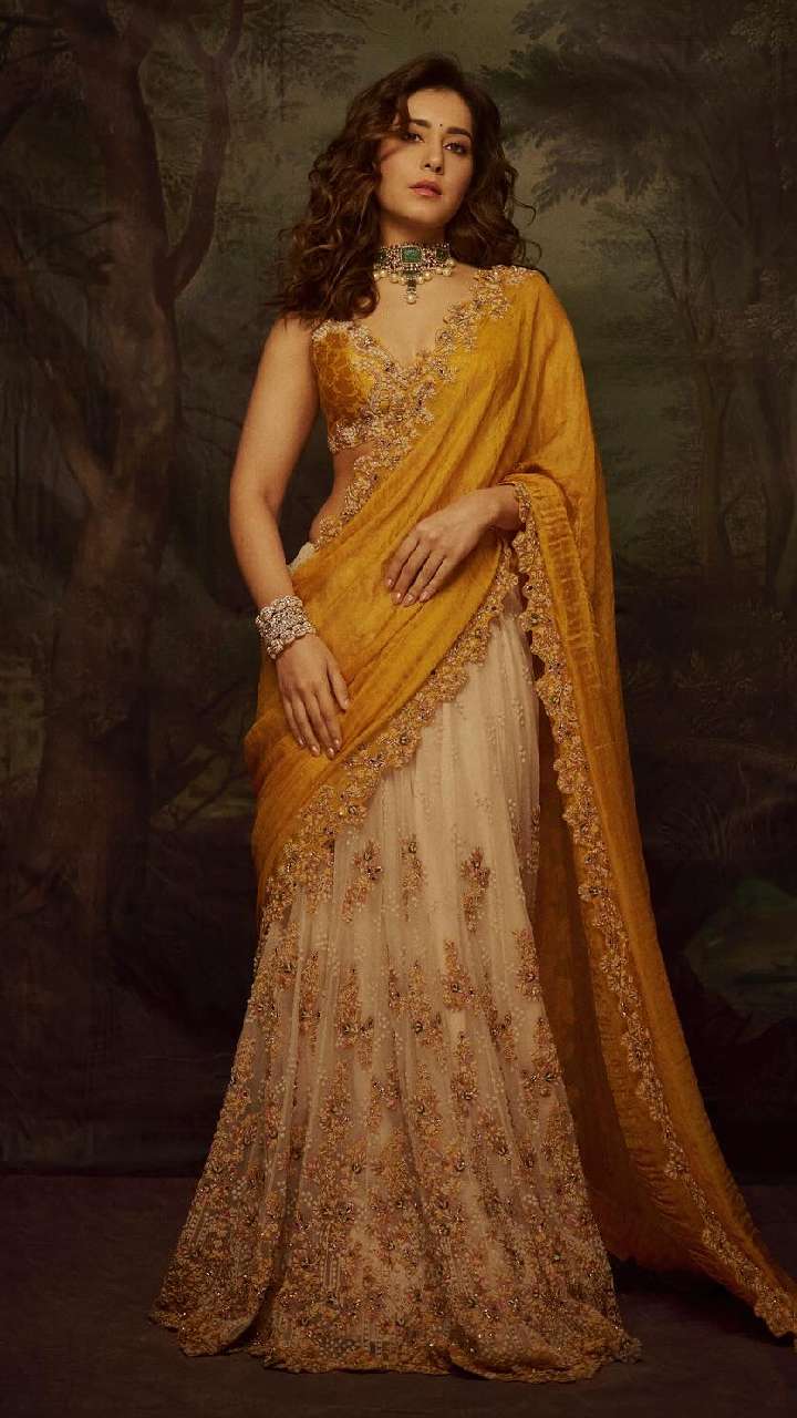 इंगेजमेंट या फिर शादी के लिए आप लहंगा की तलाश में हैं, तो राशि खन्ना की तरह ही हैवी वर्क लहंगा स्टाइल कर सकती हैं।