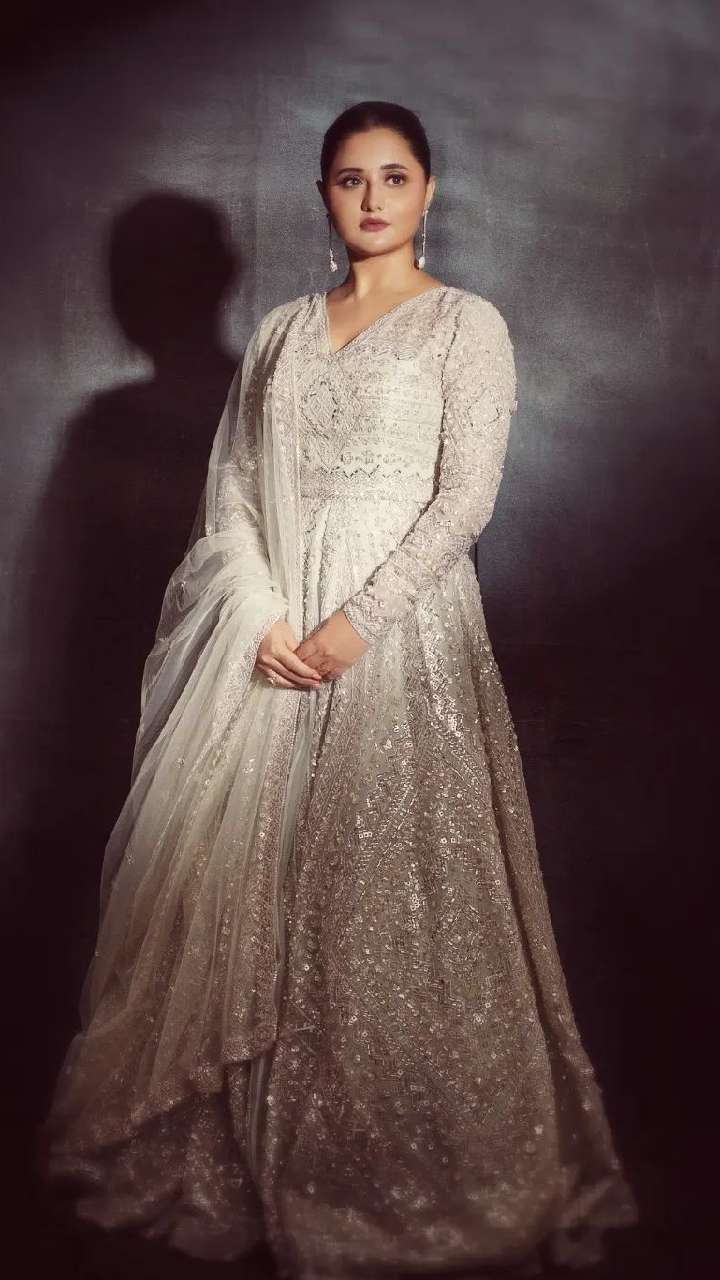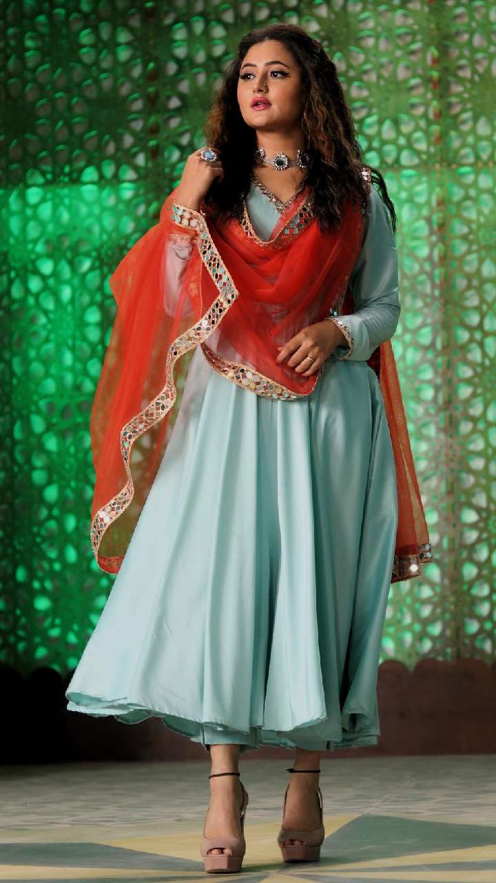 अगर आप हैवी वर्क सूट कैरी करना पसंद करती हैं तो आप रश्मि देसाई की तरह ही अनारकली सूट को पहन सकती हैं।