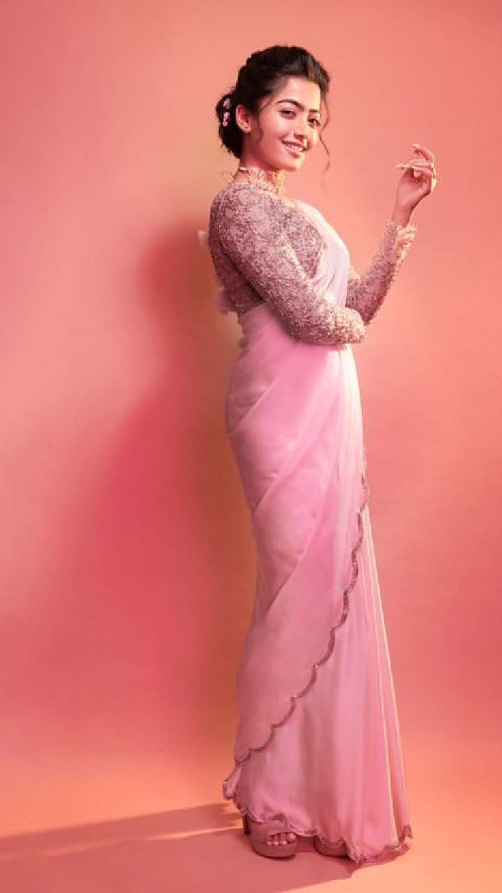 तस्वीर में नेशनल क्रश रश्मिका ने सिल्वर सेक्विन साड़ी और स्लीवलेस ब्लाउज पहना हैं। डीवा की फीमेल फैंस के लिए ये एक परफेक्ट ड्रेसिंग च्वाइस हो सकती हैं।