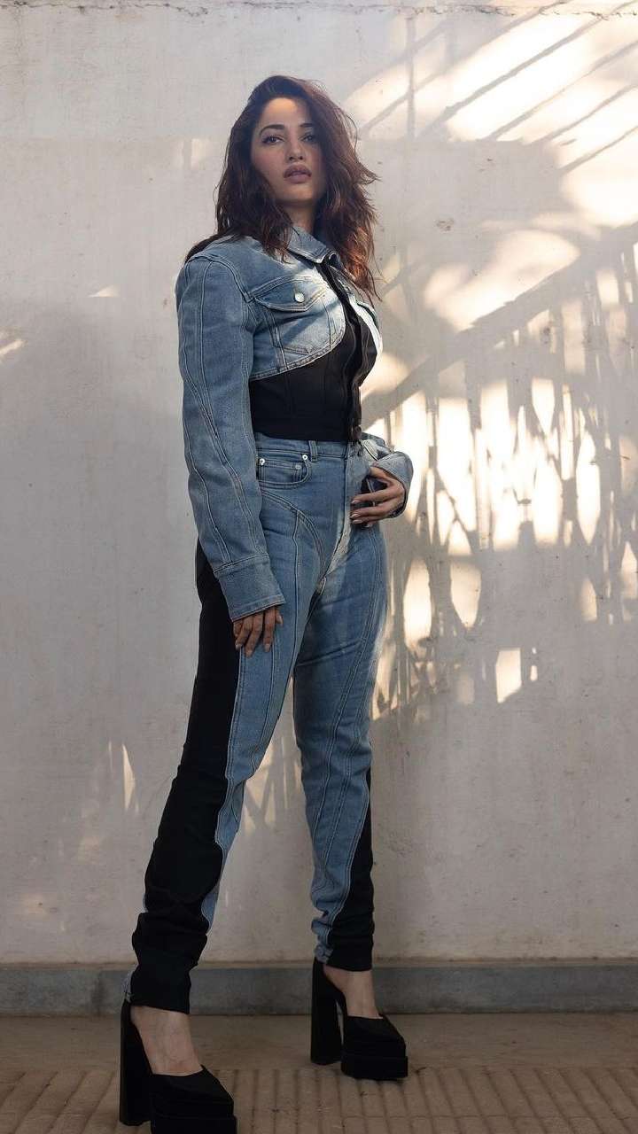 तमन्ना भाटिया का ये डेनिम लुक काफी डिफरेंट लुक दे रहा है। ब्लैक और ब्लू डेनिम से एक्ट्रेस का आउटफिट बनाया गया है।